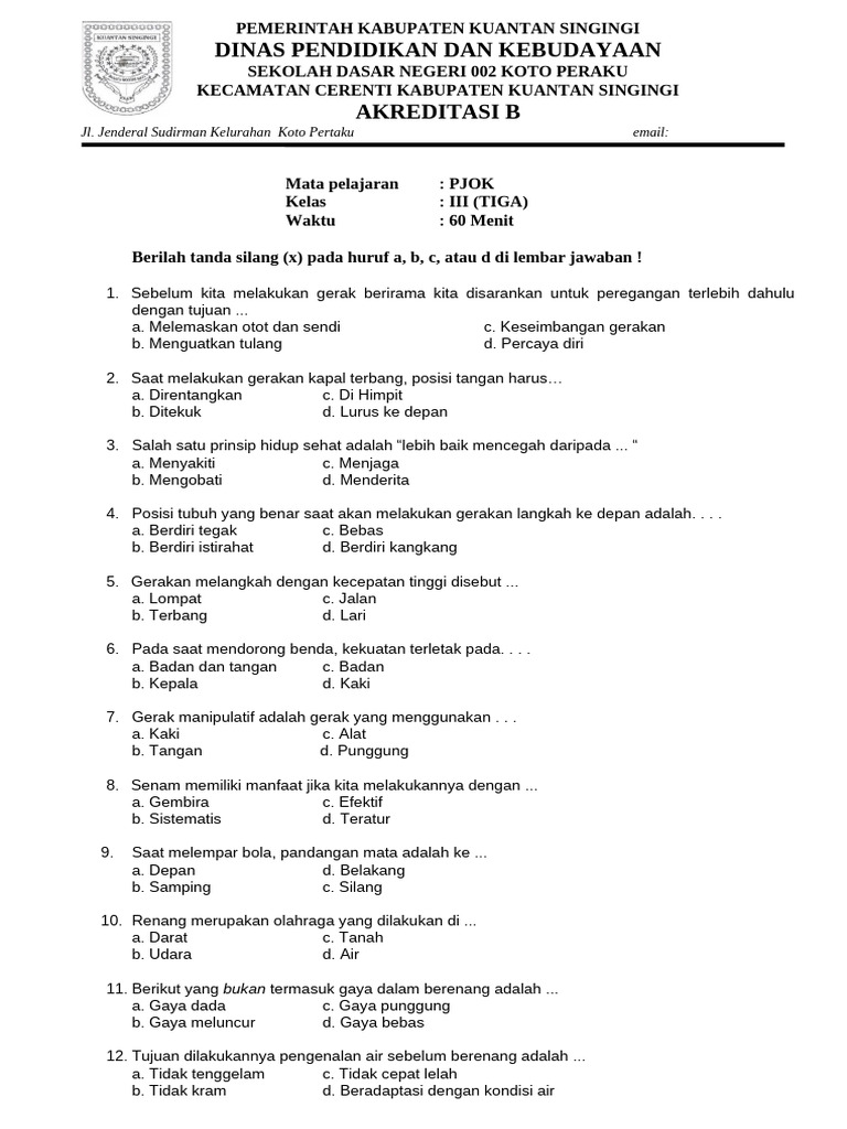 Berikut adalah contoh ilustratif dari kumpulan soal PJOK Kelas 3 SD Semester 2, yang mencakup berbagai materi dan jenis soal.